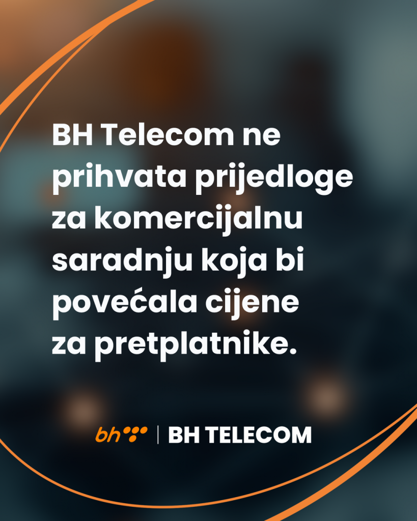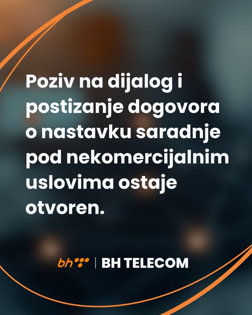 Stav BH Telecoma je da se poslovna i pravna pitanja trebaju rješavati kroz direktan dijalog i formalne procedure, a ne putem medijskih pritisaka. BH Telecom ostaje otvoren za dijalog i postizanje dogovora u okviru važećih pravnih i poslovnih okvira.
