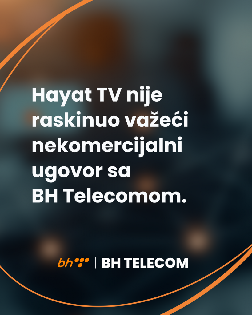 Istovremeno, BH Telecom nije zaprimio nijednu pisanu zabranu emitovanja, niti je došlo do raskida važećih ugovornih odnosa, što potvrđuje kontinuitet dosadašnje distribucije programa u skladu s važećim propisima. Posebno ističemo da Hayat TV nije raskinuo važeći nekomercijalni ugovor sa BH Telecomom, kao ni druge TV kuće za koje VIP Team United tvrdi da ih zastupa.